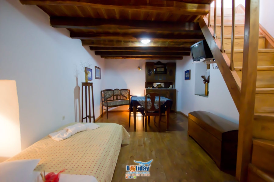 Milos, the beautiful Cyclades Island with 71 beaches, is the location of VILLA MARIA – PEIROUNAKIS, constructed in 1898, renovated 5 years ago and situated in the centre of Adamantas village. It is an authentic traditional Cycladic house, divided into two fully equipped two-room apartments. Furniture and the equipment of the apartments in general exude the charm of the old times. It is 3 minutes away by feet from Adamantas beach, cafes, shops, seaside taverns and the sandy, always calm, beach of Lagkada, which is ideal for swimming. There are parking spaces on the surrounding streets, daily cleaning service, while the neighbourhood is quiet and friendly. Both apartments are equipped with kitchen, TV, air-condition, fridge, toaster, hair dryer and safe box, and they both have a yard.