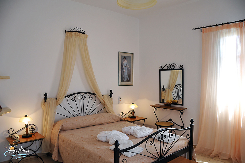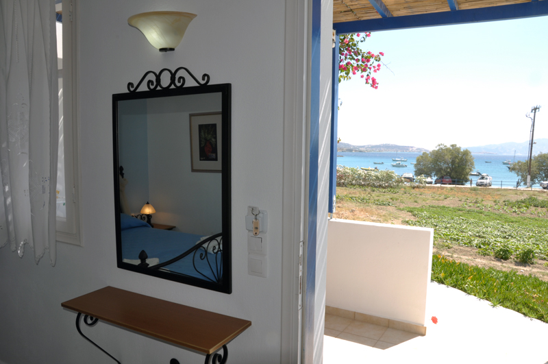 Every studio has each own veranda with sea-view and the room types are: -Superior double studio at the upper floor of the \'En-Milo\' -Double studios -Double standard room -Apartment \'En-Milo\'